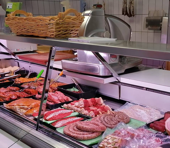 Nos spécialités incluent des viandes de bœuf, veau, porc, agneau, cheval et lapin, ainsi que des gibiers en saison comme le cerf, le chevreuil et le chamois. Nous proposons également nos saucisses maison, fabriquées avec soin selon des recettes traditionnelles, et tous les jeudis, vous pouvez retrouver du poisson frais. Pour la volaille, nous vous offrons une sélection de volailles fraîches.