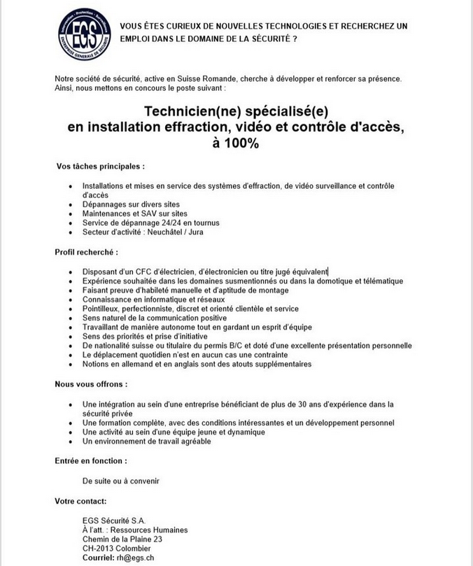 - EGS Sécurité SA (siège principal)